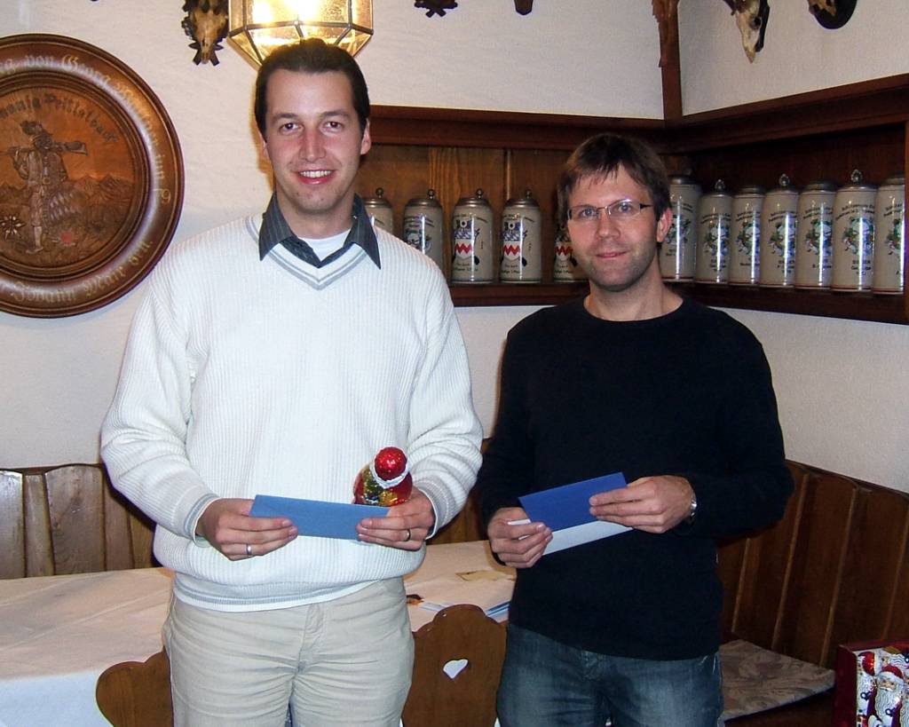 Sieger wurde Simon Wallner vor Hans Scholz und Philipp Göttler. Die 22 Beteiligten bekamen natürlich jeder einen Schokoladennikolaus. Als weitere Preise gab es Gutscheine für ortsansässige Geschäfte wie Putenhof Wallner, Bentenrieder Hof, Getränke Wallner und Gasthaus Wallner. Als besonderen Preis gab es einen Gutschein für einen Christbaum. Wenn schon mal so viele Schützen zusammen sind, konnte ein Besuch vom Nikolaus und Krampus nicht ausbleiben. So berichtete der Nikolaus von so manchen Punktrundenwettkämpfen mit vergessenen Schuhen, Kugeln oder sogar einem fast verschwitztem Wettkampf. Bei einer Mannschaft musste sogar der Senior mit dem letztlich besten Ergebnis den Sieg retten. Hier forderte der Nikolaus etwas mehr Trainingseifer bei dieser Mannschaft.