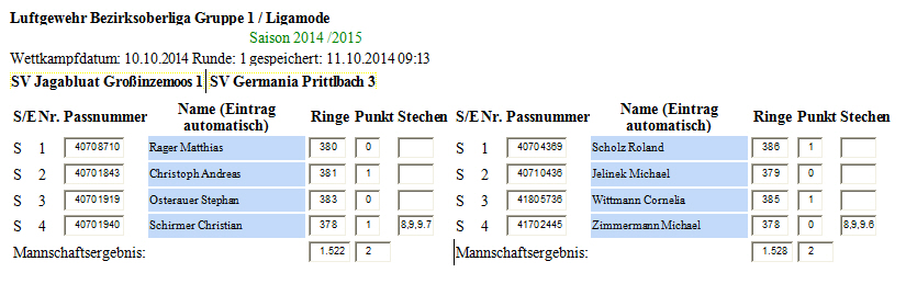 Hier die aktuellen Resultate der Prittlbacher Teams: