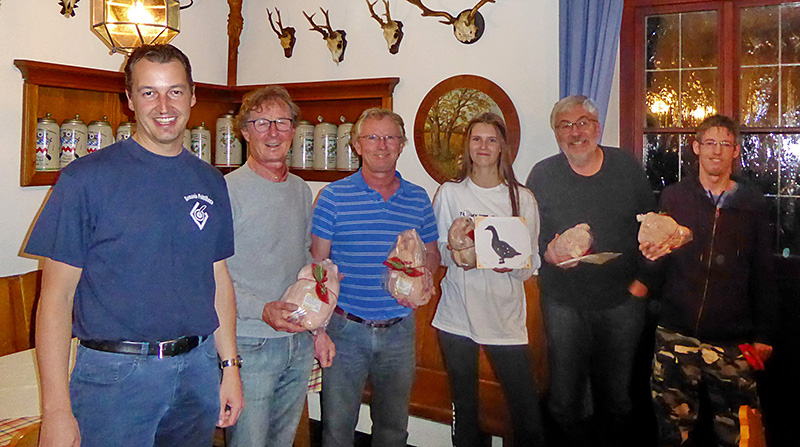 Beiden überreichte der Mannschaftskapitän der 5. LG-Mannschaft, Philipp Göttler als Ausrichter des Kirchweihschießens je eine Ente für den heimischen Kirchweihbraten. Für die weiteren drei Plätze gab es frische Hähnchen. Die Gewinner waren Dominik Kammerloher, Nicole Lustig und Ulli Köstler.