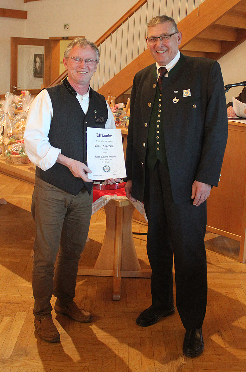 So und jetzt zu den Topschützen beim Freihändigschießen beim Oldie-Cup 2019: Erster wurde Pallauf Werner mit der Luftpistole mit einem 2 Teiler! Zweiter wurde Scholz Roland mit 193 Ringen ebenfalls freihändig mit dem Luftgewehr!