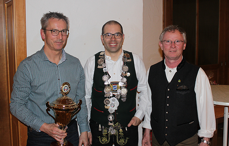 (Pallauf Werner mit Wanderpokal; Einen Fleischpreis gabs a no)