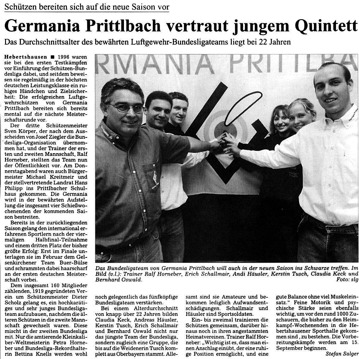 der Liga, sondern zugleich eine Gruppe, die bis auf die Weidenerin Tusch,